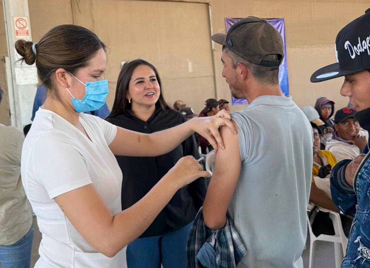 Estas acciones se realizan en coordinación con el sector Salud, mediante brigadas que recorren los distintos campos agrícolas del estado para aplicar el inoculante a las y los jornaleros que arriban durante la temporada de cosechas.